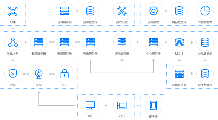 游戏云解决方案采用最新的微服务架构,实现高可用、高性能、高扩展的游戏服务平台。支持容器化部署,自动扩缩容,智能负载均衡等特性。